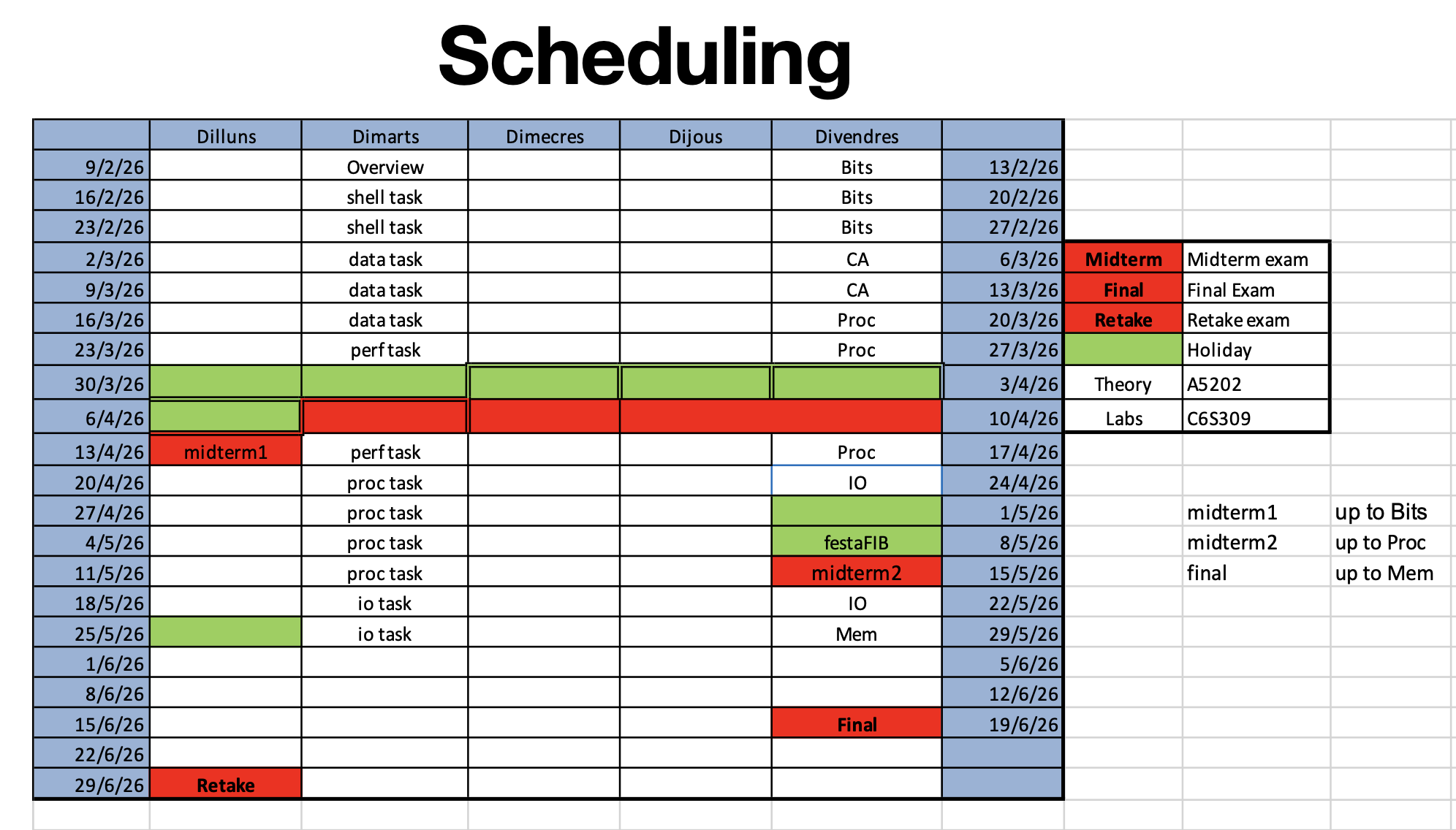 Scheduling CAOS, course 2026/26, Spring term